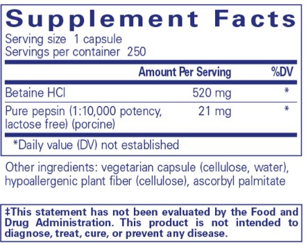 SKU: 766298000299 Categories: Gut, Healing & Repair, IBS, Enzymes, Gas, Constipation, Probiotics & Diarrhea Tags: betaine HCI, digestion support, Pepsin, Pure Encapsulations