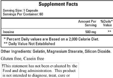 Inosine 500 mg by Ecological Formulas is a dietary supplement designed to promote the health of the nervous system.* The key ingredient in Inosine helps to facilitate the transmission of nervous system messages traveling from the brain and spinal cord to numerous areas throughout the body.* In addition to helping nerve cells remain healthy, Inosine supports the nerve growth factor involved in proper nervous system message transmission and reception